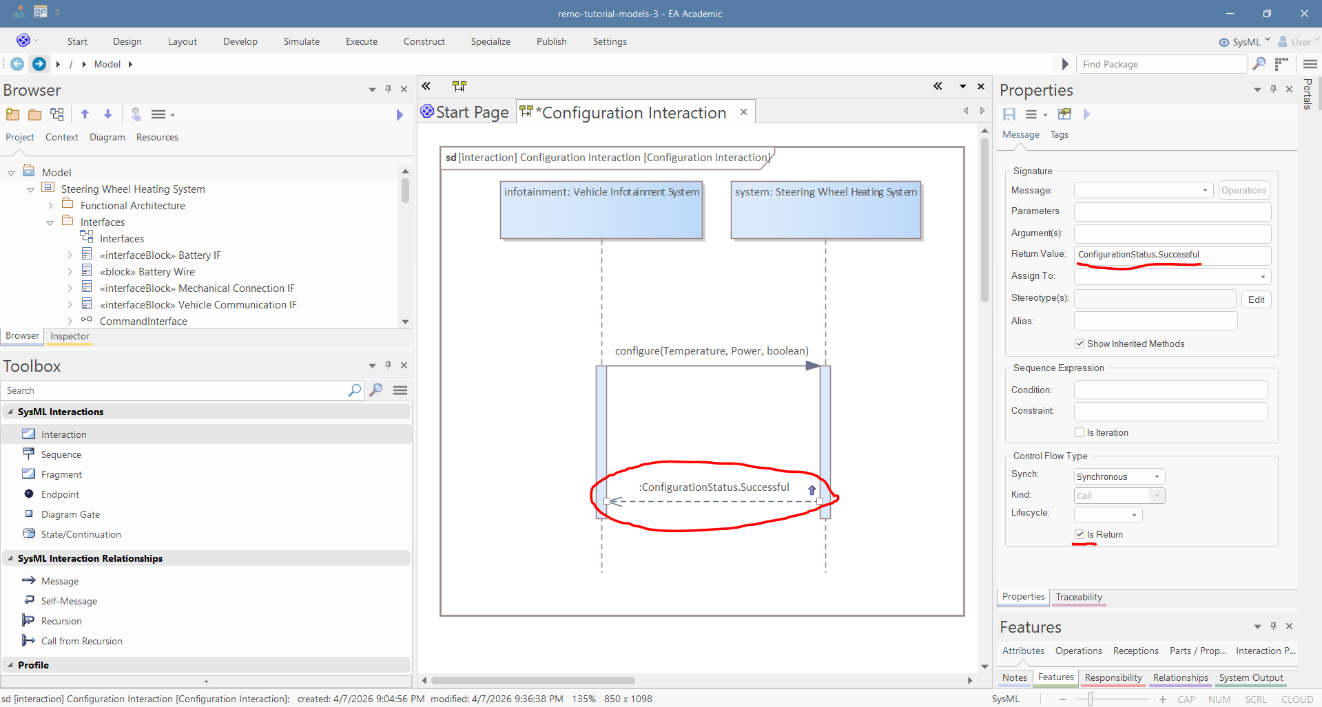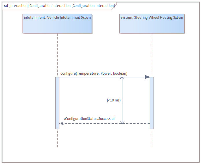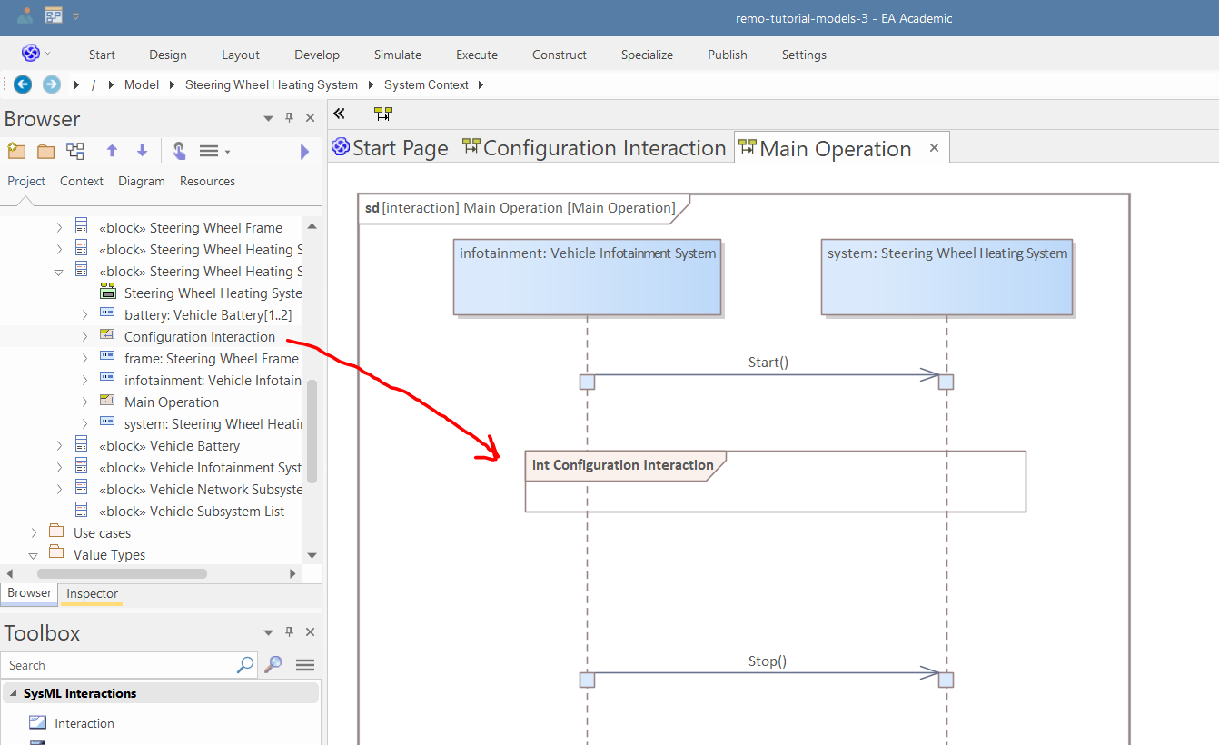 Interactions are behavioral models that define the communication of two or more components using sequence diagrams. This tutorial shows how you can define the interaction at the system boundary.