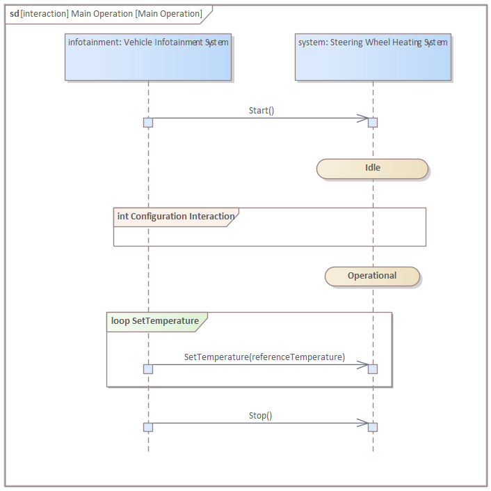 Create another interaction with a sequence diagram in the system context called "Main Operation":