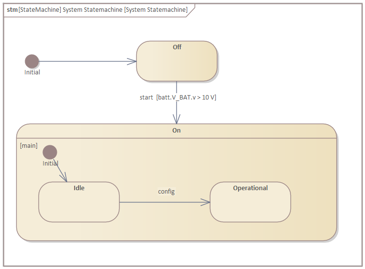 Open the statemachine diagram of the "Operational Statemachine" and create the following states and transitions: