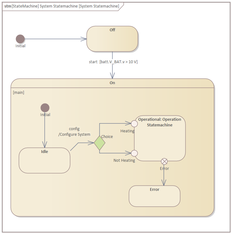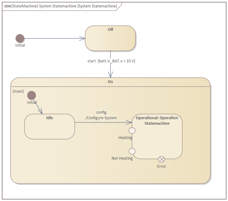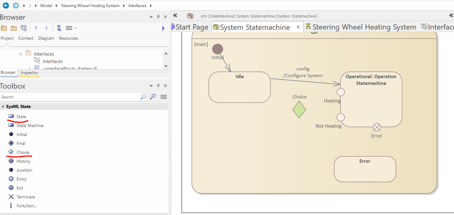 In this section, we will create the statemachine of the "Steering Wheel Heating System".