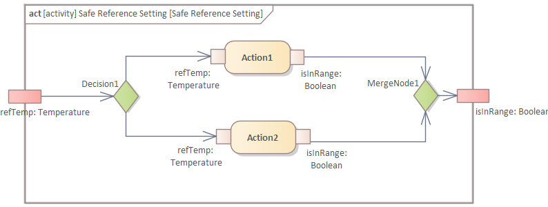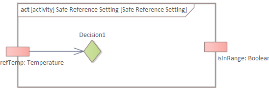 Create a "Decision" node and connect it to the refTemp input parameter with an object flow: