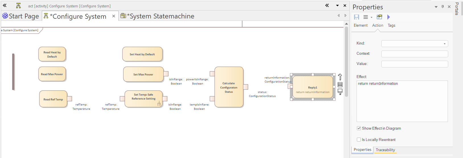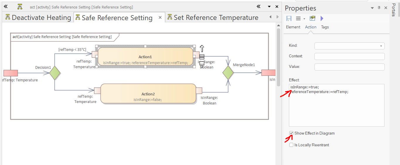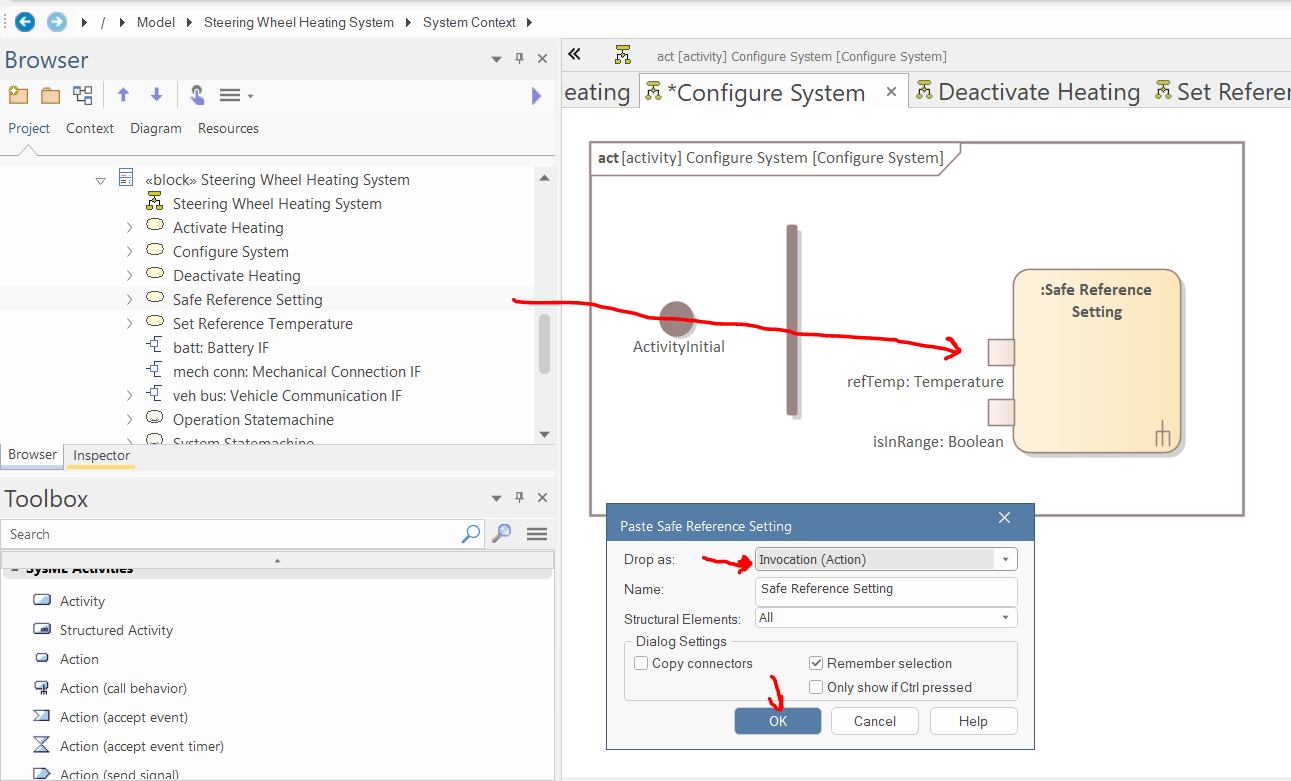 Drag and drop the "Set Reference Temperature" Activity to the diagram and drop it as "Invocation Action":